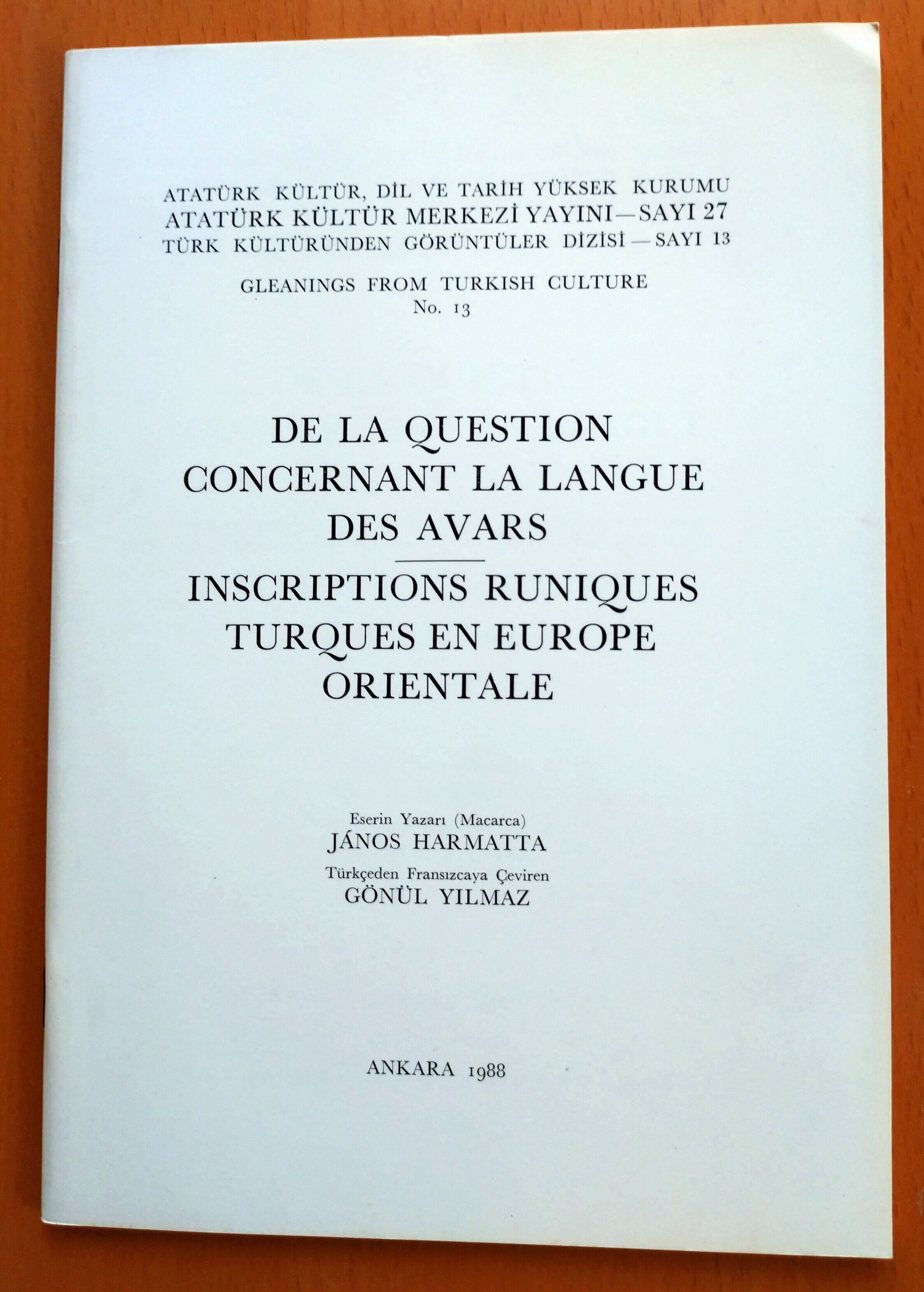 De la question concernant la langue des Avars. Inscriptions runiques Turques en Europe Orientale.」